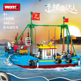 WOMA-C0359 / Wonderful Fishing Boat "Sky Blue" / Sea and Ocean Fantastic Group / Bricks Model Educational Toys for Kids Gifts / 645 PCS / 6+